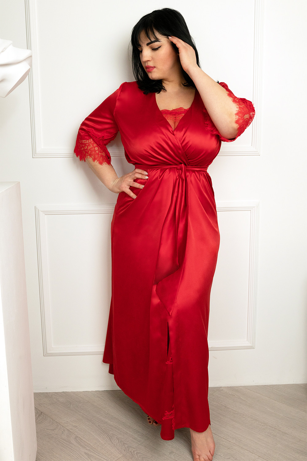 Шовковий халатик NaDDin 434 з мереживом